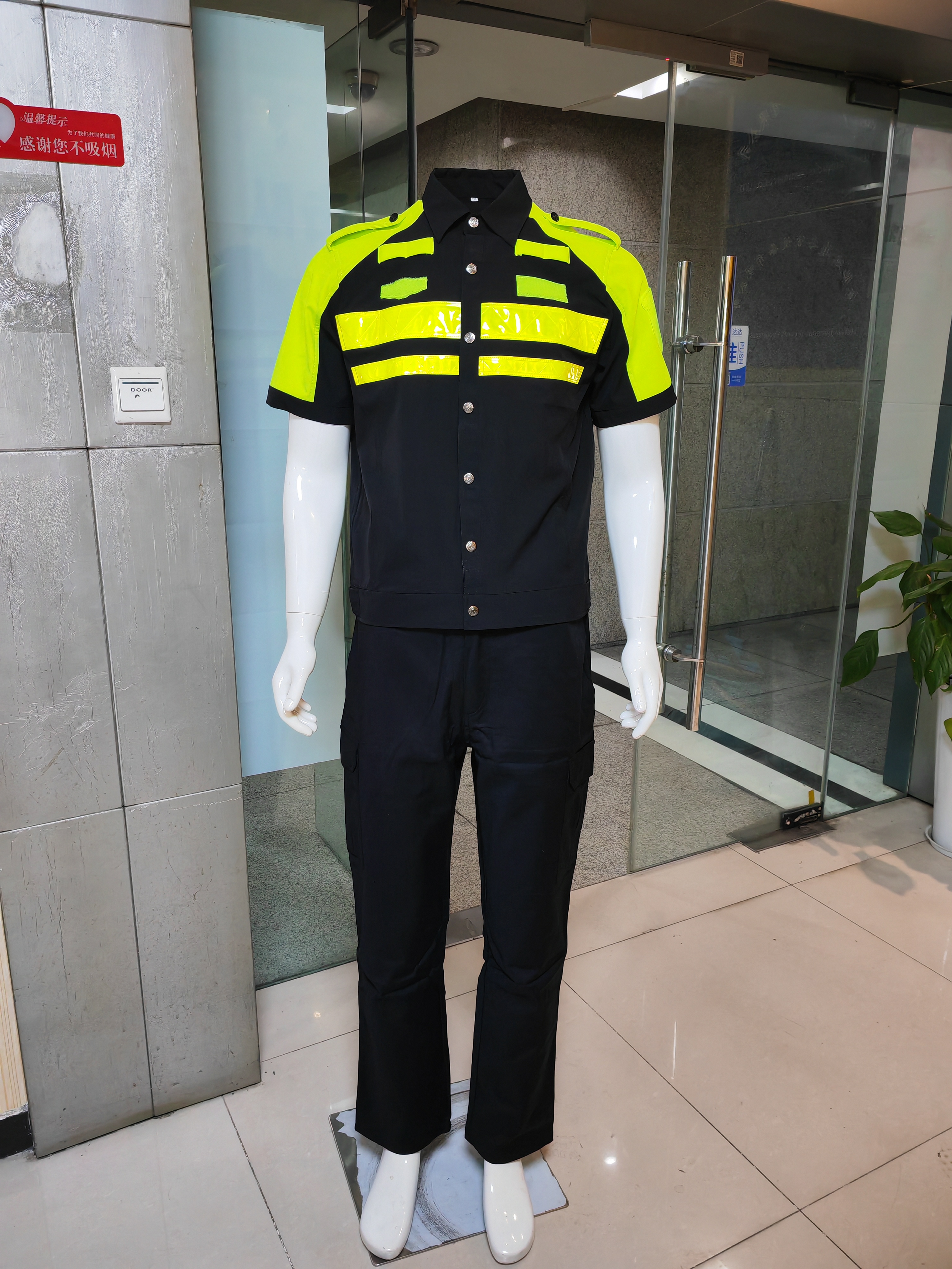 夏季户外执勤反光衣黄黑拼色防晒服