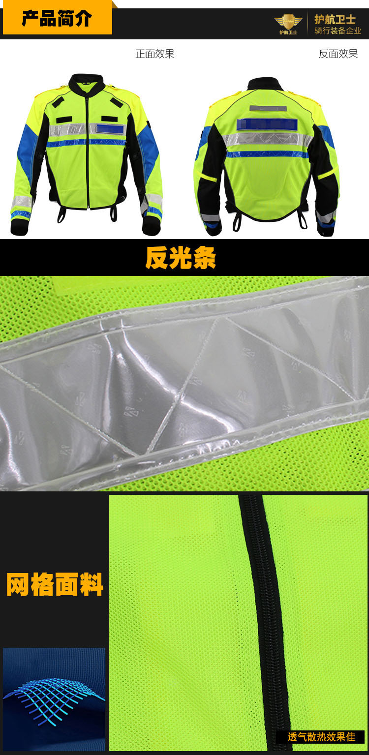 1.面料:70% 优质网眼 + 20% 台湾进口尼龙 + 10% 3M反光条