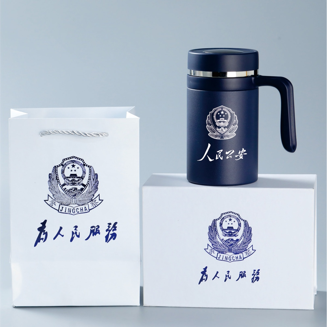 高端温显泡茶师办公专用杯,藏青色,杯盖碰触温度显示,不锈钢茶水分离茶漏,硅胶防滑底部,杯体316医用抗菌不锈钢,保温12-24小时,礼盒手提袋包装。高17厘米,直径8.3厘米 500毫升