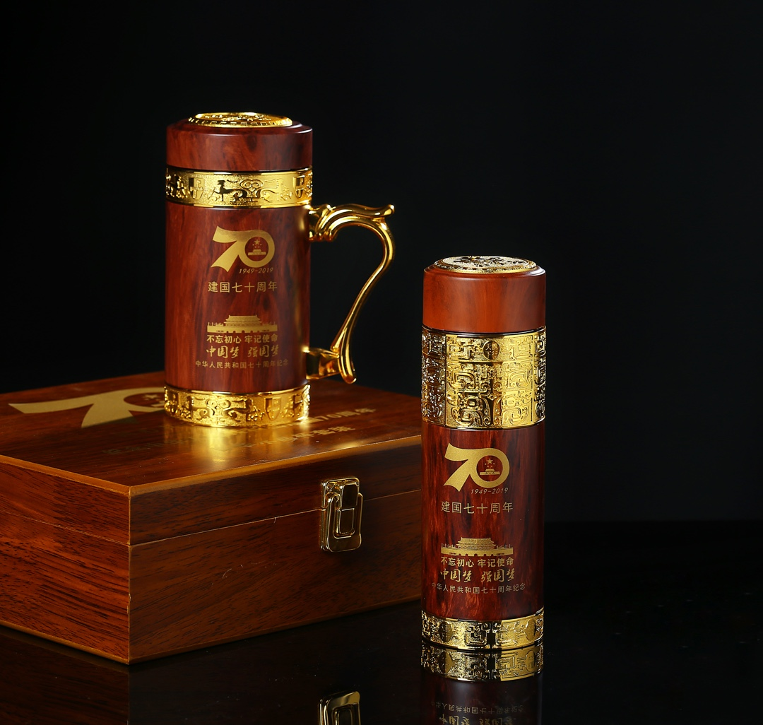 豪华礼品套装 木纹直杯办公杯。 木盒套装紫砂木纹建国七十周年。没有豪华的推广词,只有豪华的细节供顾客选择最好的产品