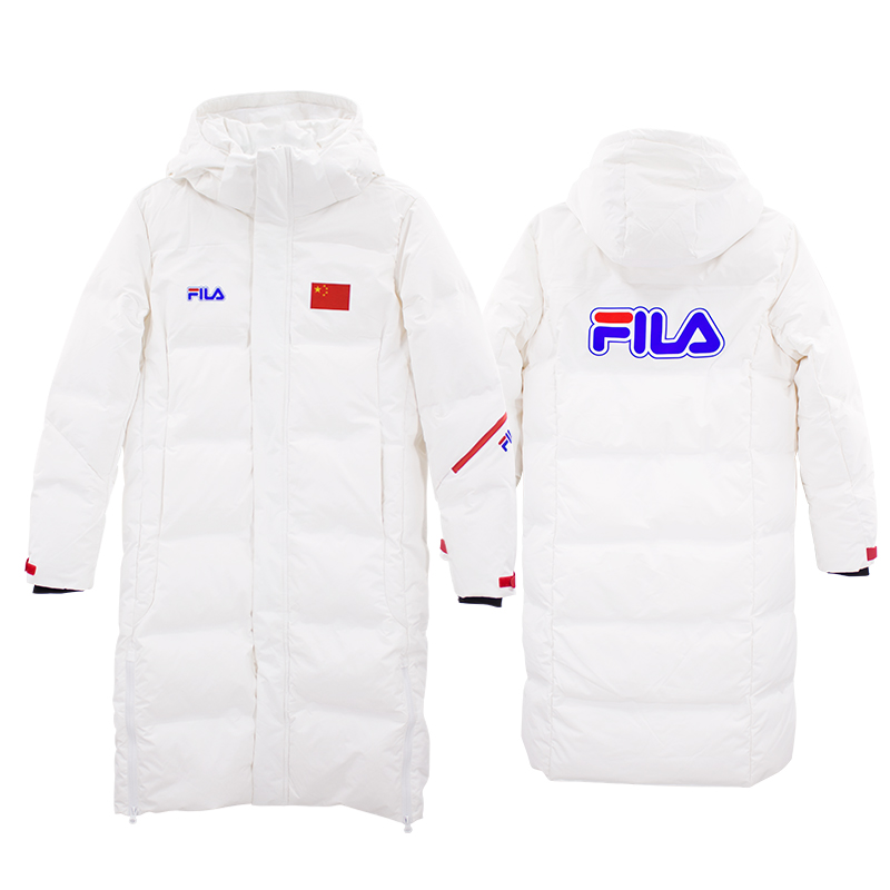 斐乐白色长款羽绒服(后背彩色FILA)