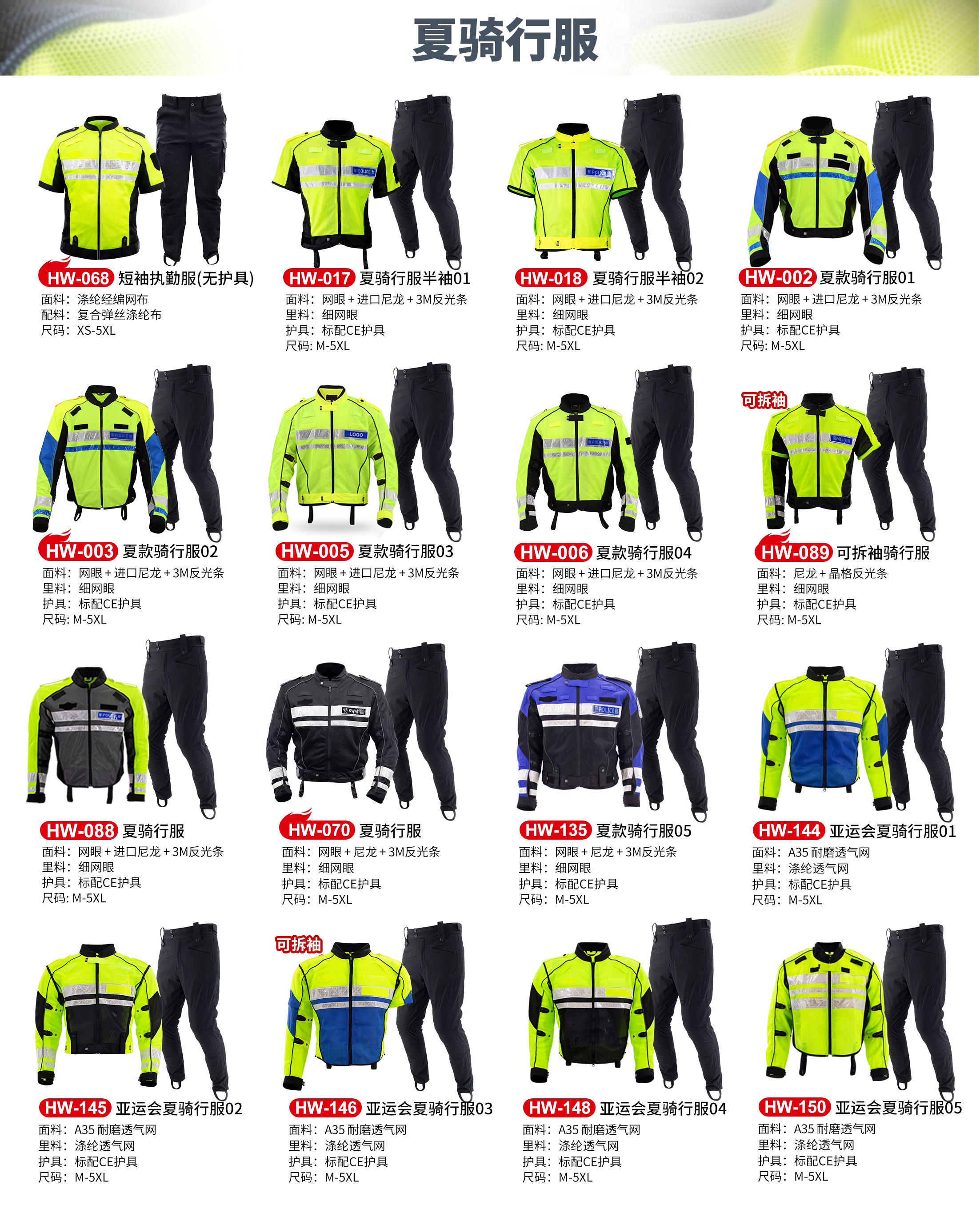 夏季骑行服总表