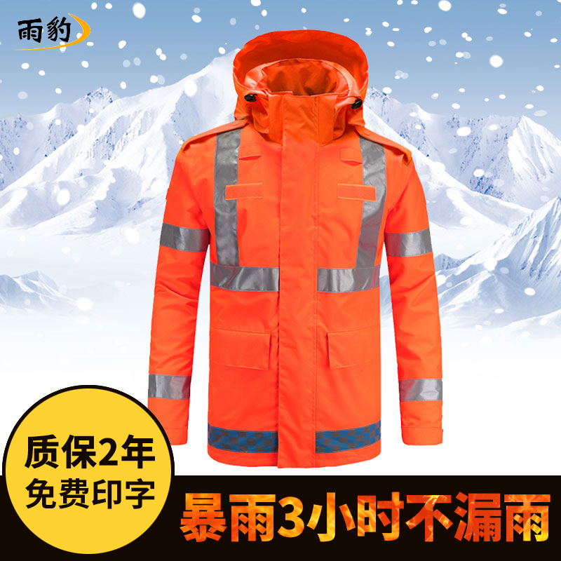 UB-016荧光橘红反光执勤棉服