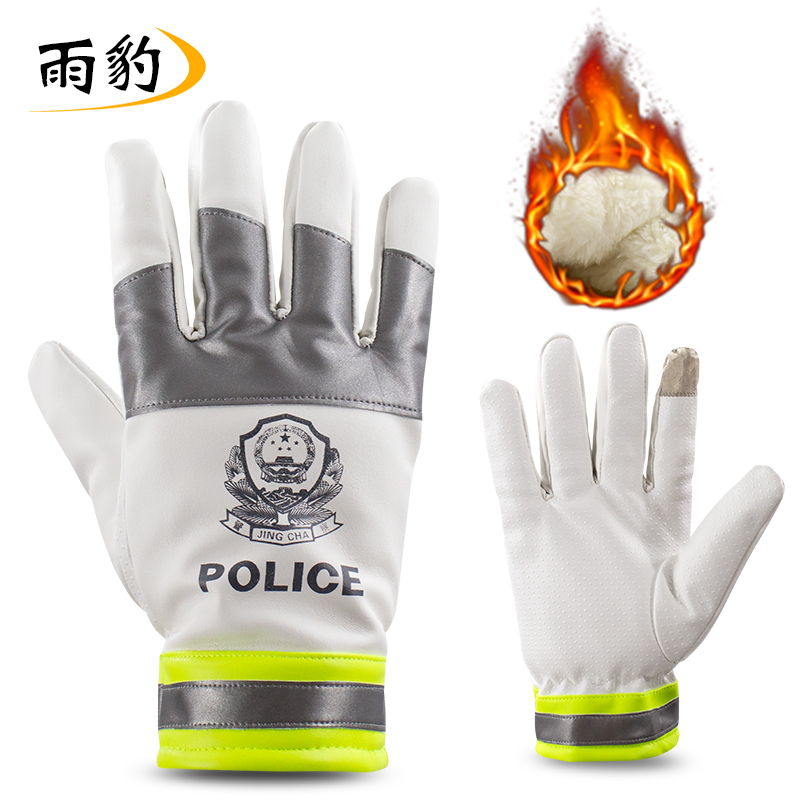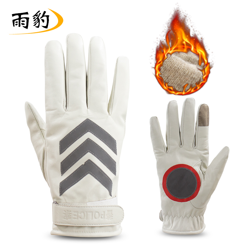 闪电 SD-036 冬季加厚保暖警用警察白色加绒皮手套