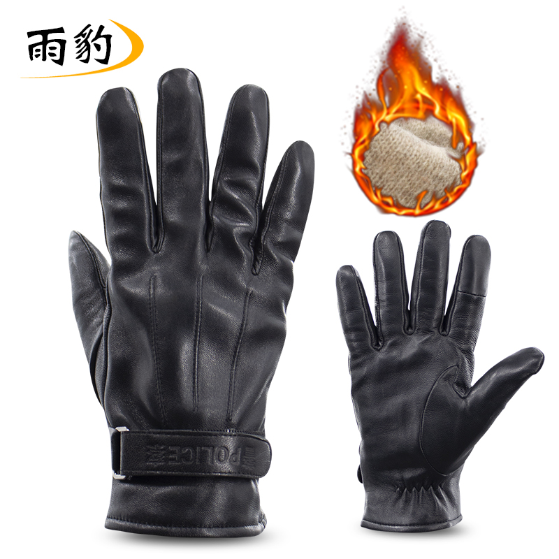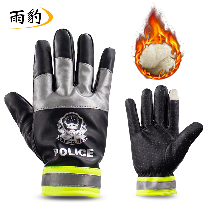 闪电 SD-037 警察黑色加绒皮手套冬季保暖棉手套