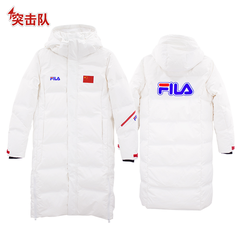 冬季长款保暖外套斐乐白色长款羽绒服(后背彩色FILA)